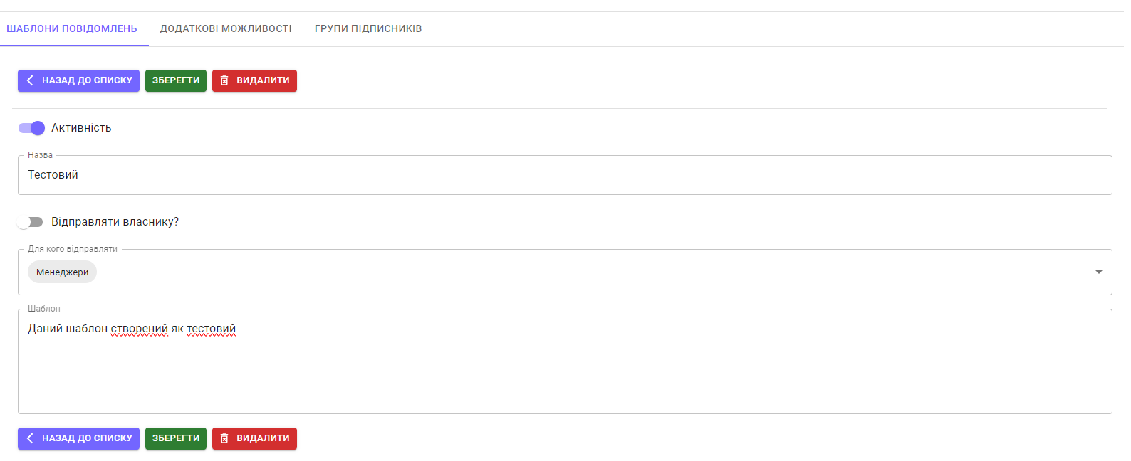 налаштування шаблонів повідомлень
